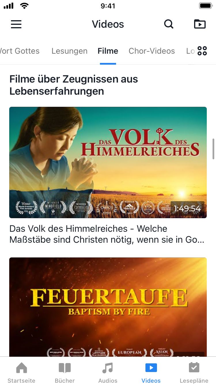Hier können Sie Christen finden, die die Wiederkunft des Herrn freudig willkommen heißen, sowie lebensechte Erfahrungen damit, vor Gottes Thron erhoben zuwerden. Wir haben diese Filme sorgfältig ausgesucht. Sie bezeugen, wie Christen Gottes Werk des Gerichts der letzten Tage erfahren und dadurch einen Wandel in ihrer Disposition erzielen. Diese christlichen Filme werden Sie darin anleiten, Gottes Werk der letzten Tage zu verstehen und den Weg zu finden, vollständige Errettung zu erlangen und in das Himmelreich einzutreten.