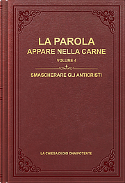 Smascherare gli anticristi“Smascherare gli anticristi” è il quarto volume de “La Parola appare nella carne”. Questo libro è una serie specializzata di sermoni e condivisioni tenuti da Dio Onnipotente, il Cristo degli ultimi giorni, tra le chiese. Dio espone meticolosamente ogni manifestazione dell’indole degli anticristi, rendendola perfettamente chiara alle persone e aiutandole in modo significativo a discernere la natura essenza degli anticristi. L’indole degli anticristi è un’indole satanica, condivisa dall’umanità corrotta. Per essere salvati da Dio, è necessario accettare il giudizio delle parole di Dio prima di poter essere purificati. Queste verità che smascherano gli anticristi servono come avvertimento, suggerimento, smascheramento e giudizio, che sono cose estremamente vantaggiose per comprendere la verità, conoscere sé stessi e ottenere la purificazione. Solo distinguendo gli anticristi si può evitare di essere fuorviati da altri, smettere di idolatrare e seguire altre persone, e ottenere invece il risultato di seguire, obbedire e adorare Dio.